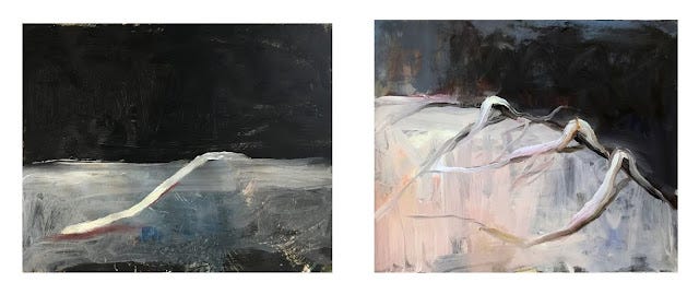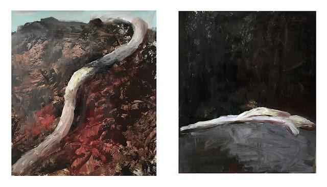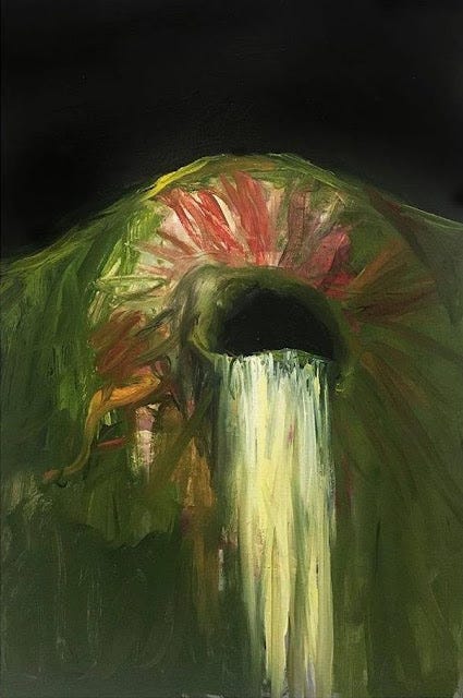 This artist’s visions are almost indescribable. But not quite. His style used to be known somewhat as biomorphic abstraction. But not quite. The Spaniard Joseba Eskubi works with soft, amorphous and organic forms in a universe of perpetual decay, entropy, erosion and healing. They are exquisitely beautiful as well as terrifying. Perhaps all the most beautiful paintings, when it comes right down to it, are also closely aligned with terror. His paintings appear to occupy a surreal world. And yet they are nonetheless accurate depictions of the realms and domains we all travel to in dreams. His work is often focused on a single organic figure which appears to be filled with dark secrets, low, hidden movements and peculiar metamorphoses, and they are often overflowing with the kind of tension which arises from staring frequently into the abyss. In fact, perhaps, his charming little diagrams are maybe the way the abyss sees us when it stares back. His works are created with drastically mixed yet harmoniously playful media -- oil painting, acrylics, plasticine, photography -- and often all merged into a single collaborative ballet of sensual abandon.