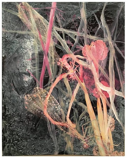 The hands of Eskubi hold a mysterious object, which could be moldy bread, containing hallucinatory imagery of the sort that the poet William Blake may have encountered while having his breakfast coffee. Such surreal organic materials often seem to yield the surpassingly seductive and strangely beautiful inherent imagery investigated by this talented phenomenologist of the unseen. He is a citizen of an invisible city situated on an invisible landscape. Luckily his passport still permits him to travel freely in our dreams.