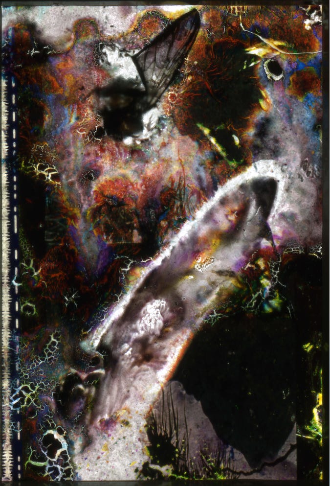 But it’s now in the form of insertion in a digital timeline, with an indestructible format via an instruction file made as commands to a computer. Analog was linear, whereas digital in non-linear, and with film there is actual light particles reflecting back onto our optic nerves from the screen, it’s warmer, but with digital, all the information sits somewhat coldly on the screen’s nerves. But despite these evolutions, and the newer ones still to come, film is not only not extinct, it still persists in the hands of artists who make their own strip reels, often out of exotic materials. ”